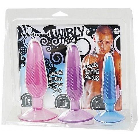 В наборе - три анальные пробочки с рифлеными поверхностями и ограничителями. Пробочки имеют разный размер, начните игру с самой маленькой, и вскоре вам захочется доставить себе больше удовольствия. Идеально подходят для подготовки к анальному сексу, легко входят, нежно разрабатывают сфинктер. Длина большой пробки - 15,2 см., рабочая длина - 12,5 см., диаметр - 4 см.