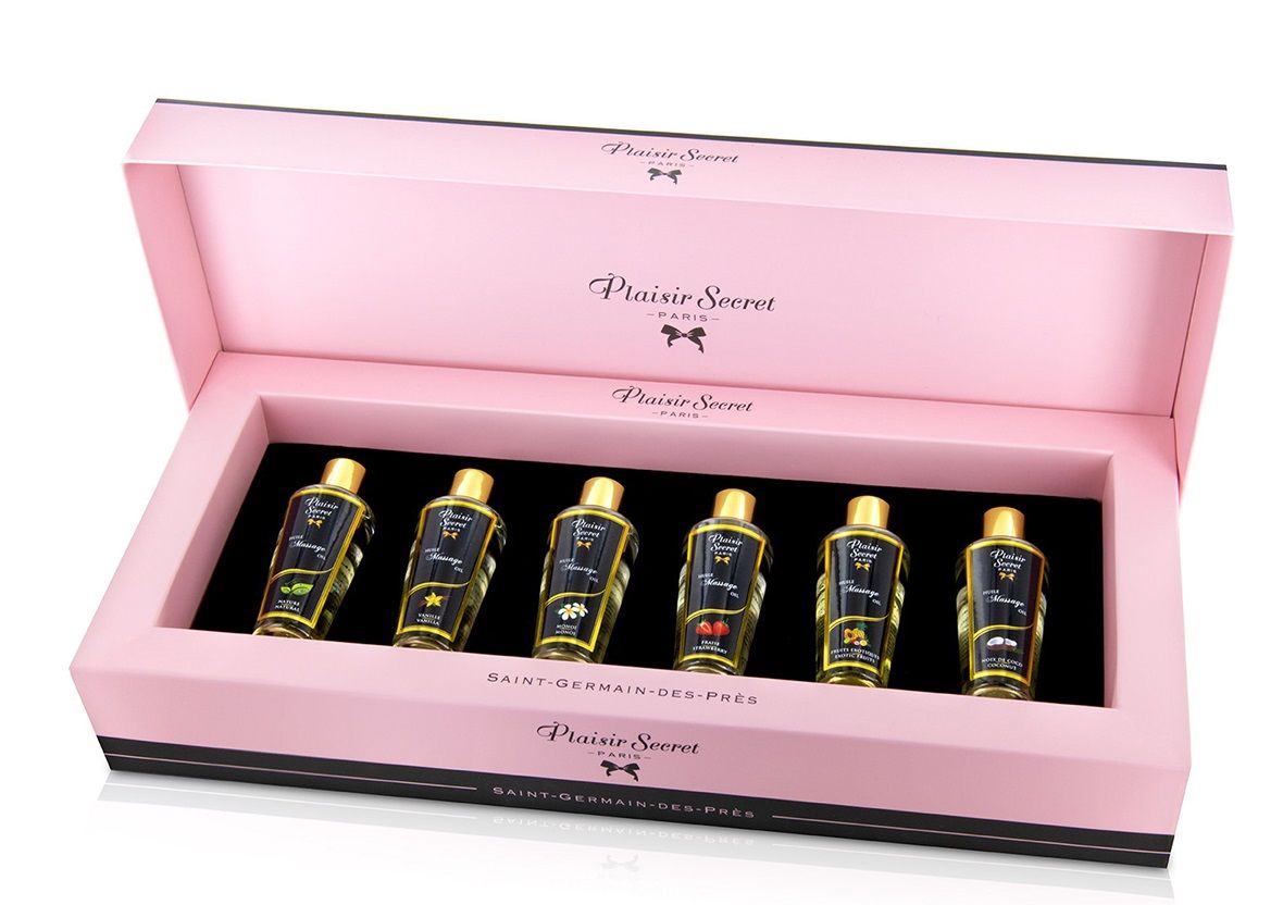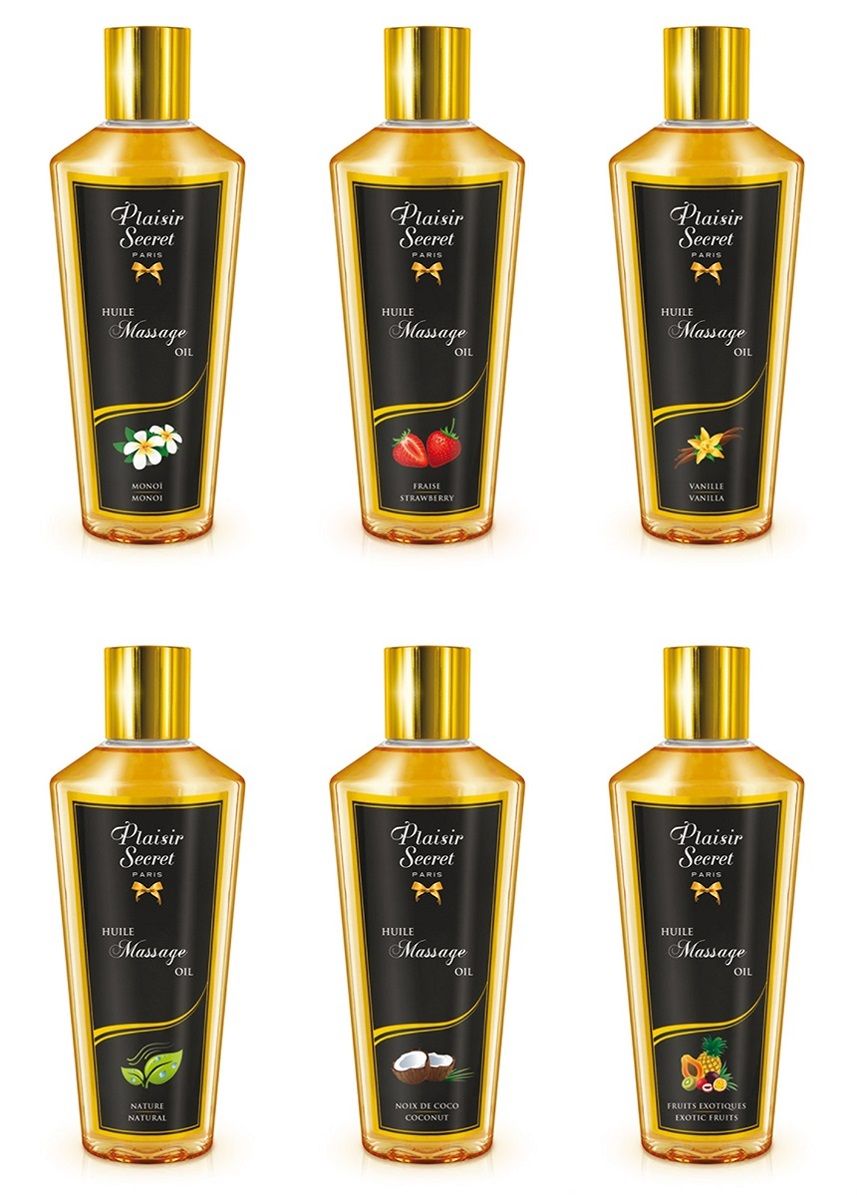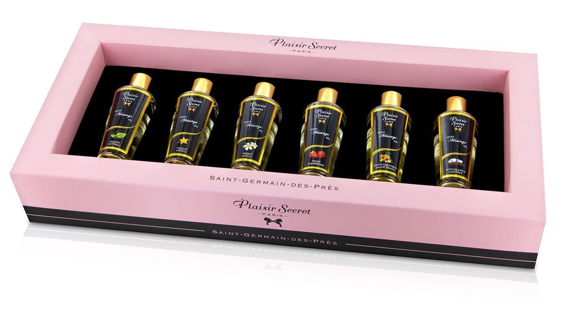 Набор массажных масел в коробочке из 6 штук, по 30 мл. каждая. Набор представлен следующими ароматами: монои, ваниль, экзотические фрукты, кокос, клубника и нейтральный. 100% натуральный, растительный состав масел.