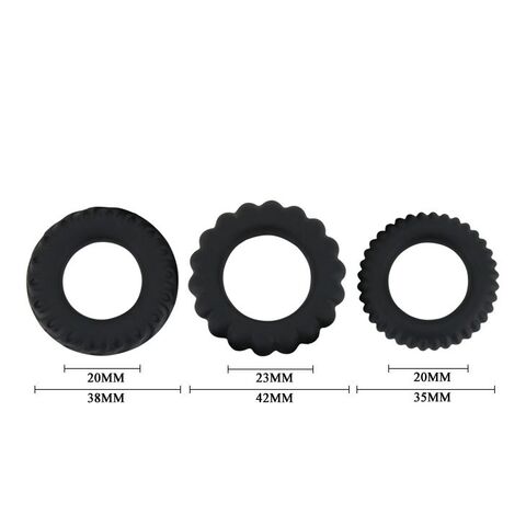 Вы можете использовать только одно кольцо, надев его на основание полового члена, либо все три одновременно, распределив их по всей длине, либо использовать одно из колец для плотного обхвата мошонки. В комплекте: