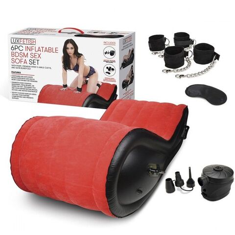 Надувная секс-софа для БДСМ-игр включает в себя все, что вам нужно, чтобы улучшить сексуальную парную игру с элементами бондажа. А также это просто универсальный предмет мебели, который позволит вам попробовать секс в новых захватывающих позах. Эта надувная кровать, выполненная в классической эротической цветовой комбинации красного и черного, она манит вас своей бархатистой мягкой поверхностью и своими чувственными изгибами, изготовлена из прочного ПВХ и покрыта бархатистым материалом для комфорта. Получите удовольствие от экспериментов с прилагаемыми манжетами для запястий и щиколоток. Простые в использовании манжеты удобны для новичков и являются идеальным введением в мир БДСМ-игр. С комфортом передайте контроль за ситуацией. Лежа и расслабляясь, позволяйте своему доминирующему партнеру взять на себя все управление сексуальной игрой, пока вы подчиняетесь его стимулирующим прикосновениям. Софу можно надуть в любой момент, когда наступит сексуальное настроение, а также можно сдуть, когда игра закончится. Помимо фиксаторов для запястий и щиколоток в комплекте к софе предлагается черная маска и насос. вес 4,670 кг, длина 51 см, ширина 18 см, высота 31 см Выдерживает вес 90кг В комплекте: софа, фиксаторов для запястий, щиколоток, атласная черная маска, насос и насадки чтоб легко надувать и сдувать.