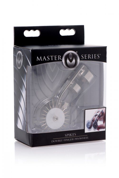 Насадка на палец с игольчатыми колёсиками Spikes Double Finger Pinwheel. Массажер надевается на пальцы, изготовлен из металла. Подари своему партнеру чувственное болезненное удовольствие!