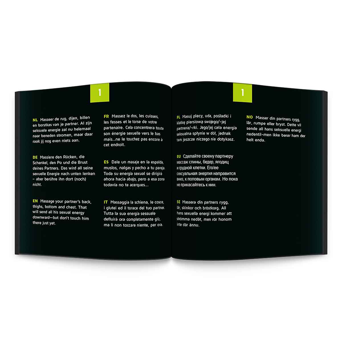 Добавьте захватывающую изюминку в свою сексуальную жизнь. Крутите рулетку, стрелка указывает на число, которое решает, какое любовное задание ждет вас. Следуйте за номером по прилагаемому буклету, и он подскажет вам различные задания, благодаря которым вы внесете разнообразие в свой любовный досуг.