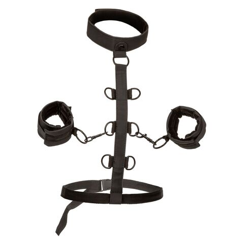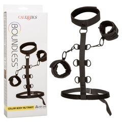 Раздвиньте границы удовольствия и откройте для себя бесконечные возможности связывания с ограничителем тела Collar Body Restraint. Наденьте эту смелую удерживающую систему и наслаждайтесь страстной игрой с универсальными манжетами из веган-кожи, прочным воротником и многоуровневым удерживающим тросом.