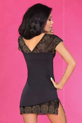 Сорочка из стрейч-атласного материала, рукава и низ изделия обрамлены кружевом. В комплект входят трусики . В комплекте: сорочка, трусики-стринги.