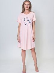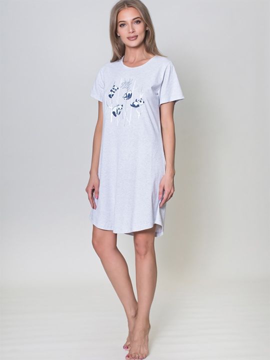 Трикотажная туника с коротким рукавом, из однотонной ткани с принтом впереди.