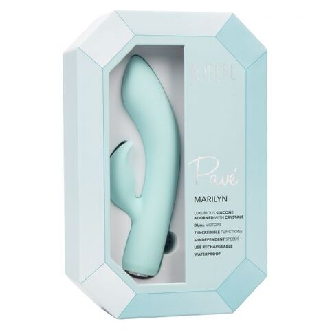 Pave Marilyn – изумительный перезаряжаемый мультискоростной вибромассажер-кролик из высококачественного гипоаллергенного силикона, выполненный в стиле товаров от Тиффани. Вагинальный отросток вибромассажера Marilyn имеет плавный эргономичный изгиб и слегка скошенную головку с заостренным кончиком. Контурный клиторальный отросток, выполненный в форме лепестка, оснащен отдельным мощным виброэлементом. Два мотора вибромассажера обеспечивают 7 функций равномерной интенсивной вибрации и 5 независимых скоростей.