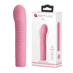 Нежно-розовый мини-вибратор Mick с ребрышками. Увеличенная головка. 10 режимов вибрации.