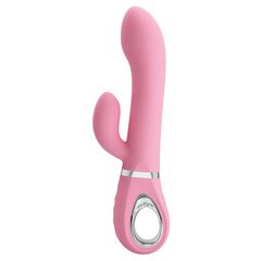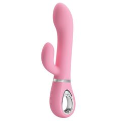 Нежно-розовый вибратор-ротатор с клиторальным отростком Ternence - 19,6 см.