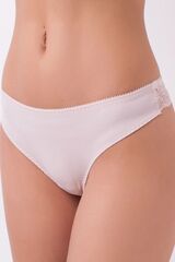 Трусы-бразилиана со средней линией талии. Передняя деталь выполнена из эластичного полотна. Задняя деталь выполнена из эластичного кружева. Проймы передней детали обработаны мягкой эластичной лентой на плоскошовной машине. Украшение - атласный бантик. Внимание: европейские размеры! Для определения российского размера необходимо прибавить 6!