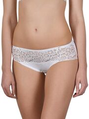 Трусы со средней посадкой, выполнены из гладкой микрофибры. Широкая вставка из эластичного кружева на фронтальной панели. Ластовица - 100% хлопок. Важно: в карточке указаны российские размеры! На этикетке европейские (российский размер минус шесть)!