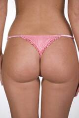 Атласные трусики-стринги, декорированы кружевом. Трусики внутри продублированы хлопком.