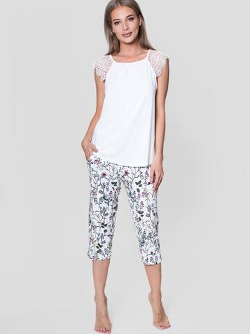 Комплект из трикотажной ткани с капри и блузоном с кружевными вставками на плечах. В комплекте: блузон, капри.
