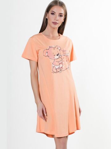 Трикотажная сорочка из однотонной ткани с коротким рукавом с принтом впереди.