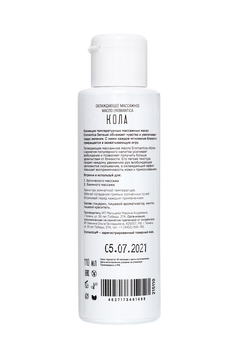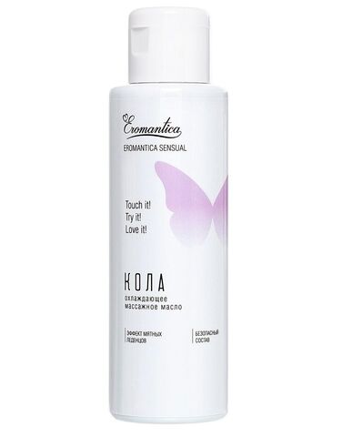 Коллекция температурных массажных масел Eromantica Sensual обнажает чувства и увеличивает градус желания. С ними каждое мгновение близости превращается в захватывающую игру. Охлаждающее массажное масло Eromantica «Кола» с ароматом популярного напитка усиливает возбуждение и позволяет получить больше удовольствия от близости.