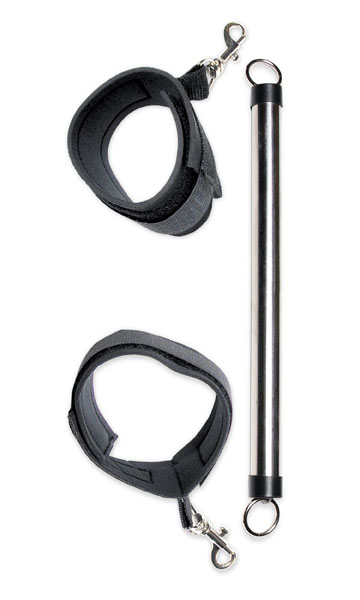 Эти наножники с фиксацией заставят Вашего партнера раздвинуть ноги пошире - специальная металлическая трубка, которая крепится к фиксаторам, не позволяет соединить лодыжки. При этом наножники не травмируют кожу благодаря специальным подкладкам. Длина стержня - 25 см. Длина фиксаторов регулируется с помощью липучек.