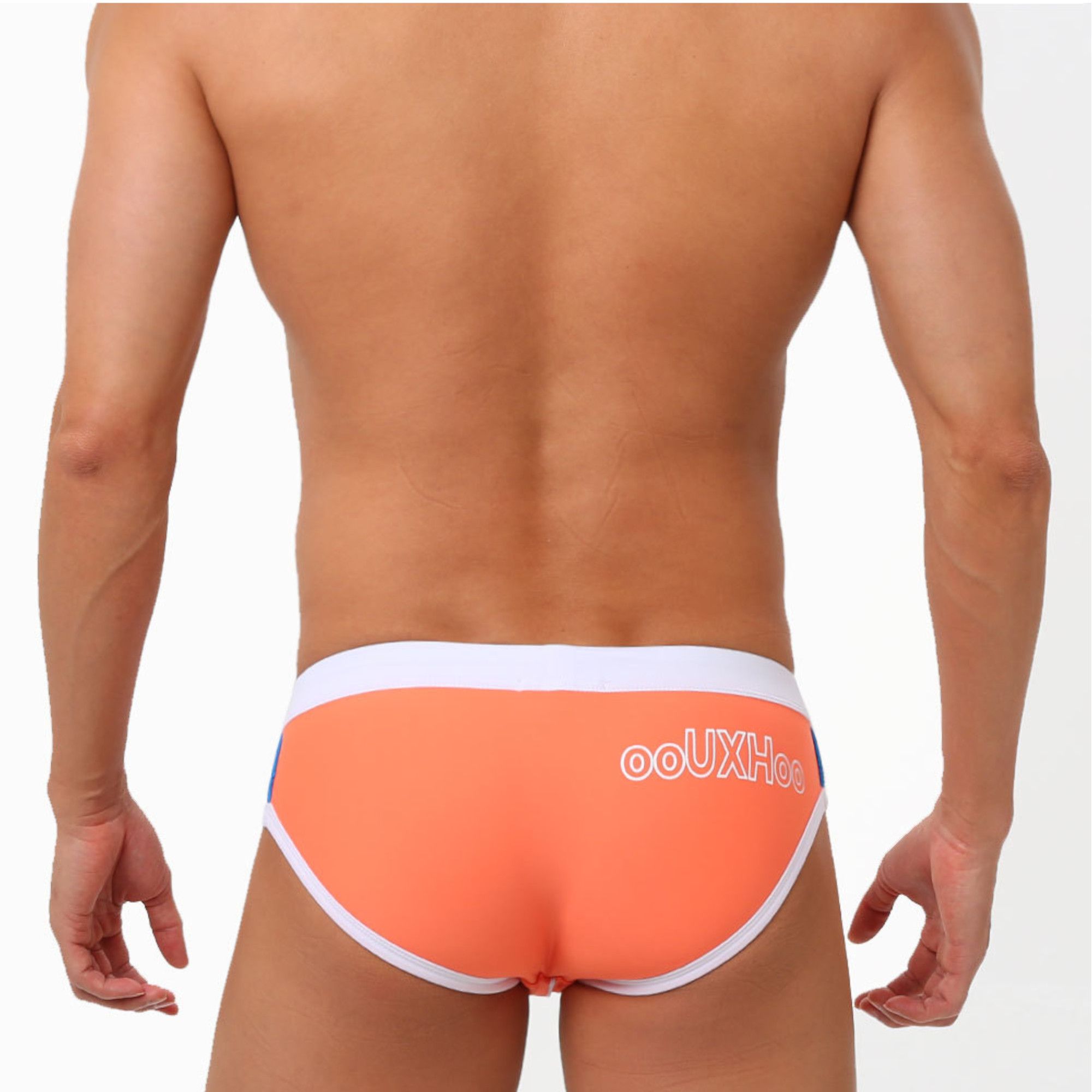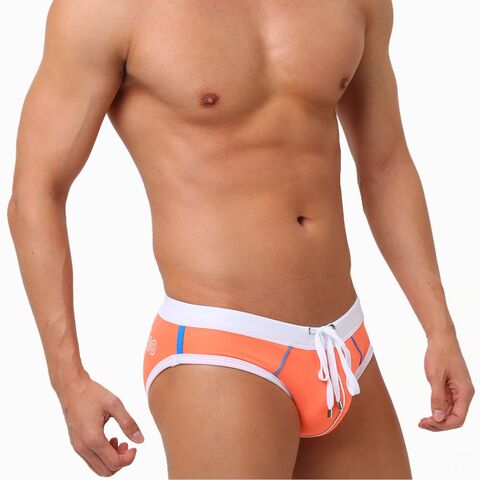 Оранжевые мужские плавки с поясом на шнурке.