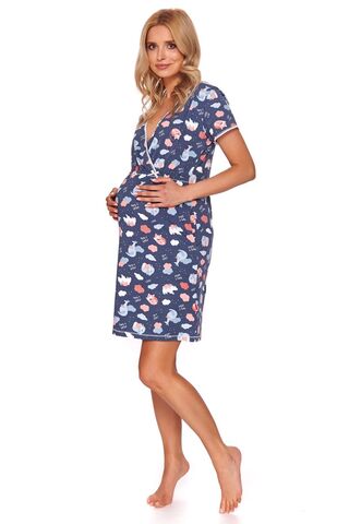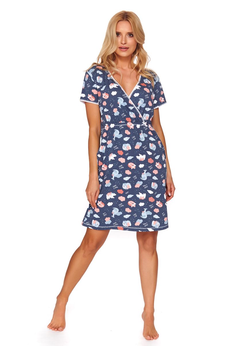 Хлопковая сорочка с коротким рукавом с забавным принтом. Сорочка с горловиной для кормления. Идеальный вариант для сна и домашнего отдыха.