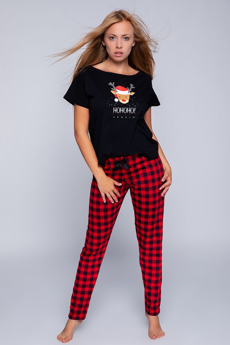 Хлопковая пижама Lampo состоит из футболки цвета и клетчатых брюк. Футболка свободного кроя, с коротким рукавом, на груди забавный принт. Брюки на мягкой резинке. В комплекте: футболка, брюки.