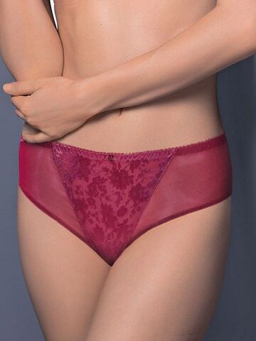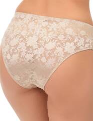 Трусы-слип с низкой линией талии. Выполнены из жаккардового кружева с цветочным рисунком и вставок из двойной эластичной сетки