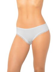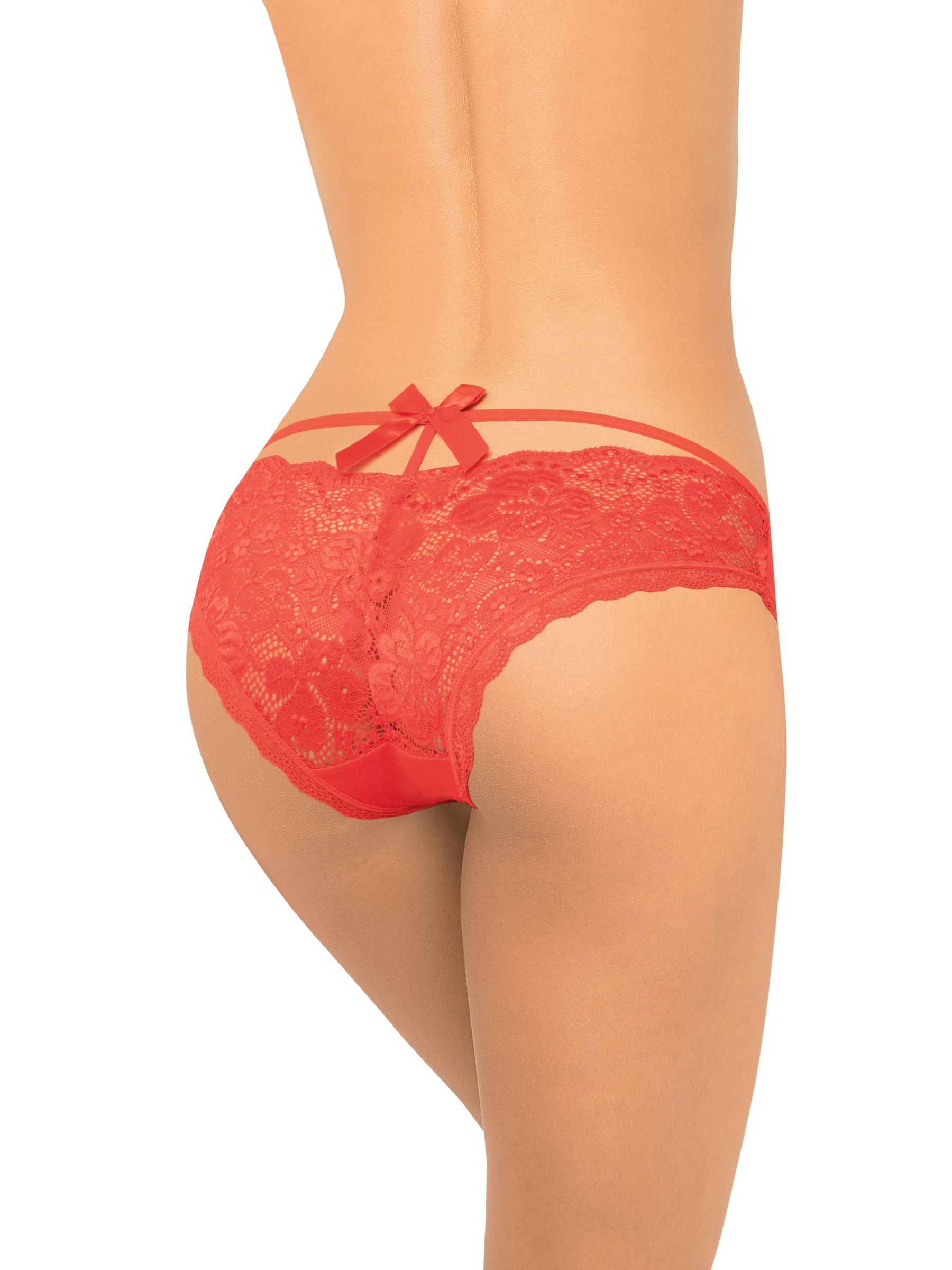 Трусы со средней линией талии, пикантная задняя деталь декорирована кружевом и атласным бантом.