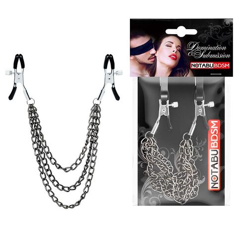 Изящные аксессуары для стимуляции сосков и усиления сексуального возбуждения. На концах зажимов имеются специальные эластичные накладки, препятствующие сильному сдавливанию и травмированию сосков. Подвески украшают секс-игрушки. На каждом изделии предусмотрен регулировочный винт, позволяющий контролировать силу сдавливания сосков. Интимные аксессуары могут использоваться соло или для парных любовных игр. Изделия просты в применении. Не требуют специального ухода.