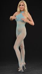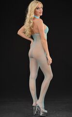 Оригинальный кэтсьюит, с вырезами в зоне бикини. На шее - петля, удерживающая комбинезон на груди.