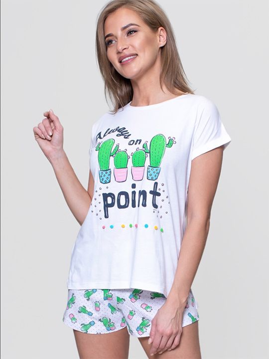 Оригинальный женский комплект с узором в виде многочисленных кактусов. Футболка с коротким рукавом и шорты. Ткань мягкая и приятная на ощупь. В комплекте: футболка, шорты.