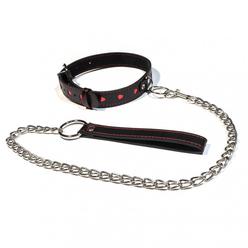 Достаточно надеть на вашего партнера ошейник и сразу все роли распределены. Останется лишь насладится новым волнующим сексуальным приключением! Ошейник с отстегивающимся поводком, состоящим из металлической цепочки и специальной петли для руки. Декорирован оригинальной аппликацией в виде горящих алых сердец и прошивкой из красных нитей. Аксессуар украсит изгибы шеи и станет не только признаком причастности к БДСМ , но и оригинальным украшением. Ширина ошейника - 2,5 см.