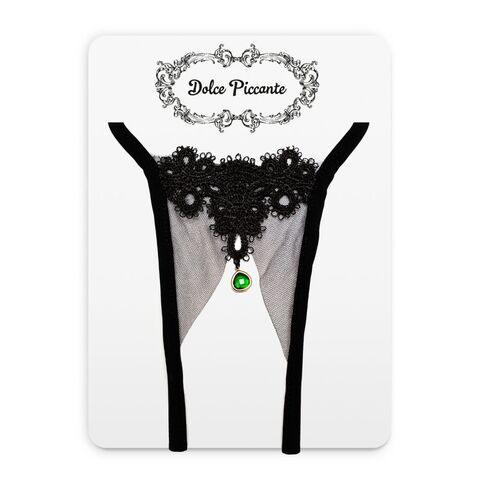 Невесомые черные трусики, полностью открытые снизу. Лишь немного кружева и яркий маленький камешек - белье для ночи, которую мужчина не забудет никогда. Бренд кружевной красоты Dolce Piccante. Французское кружево Экрю. Ручная работа. Лимитированный тираж.