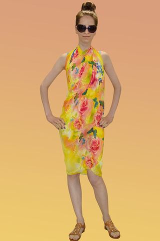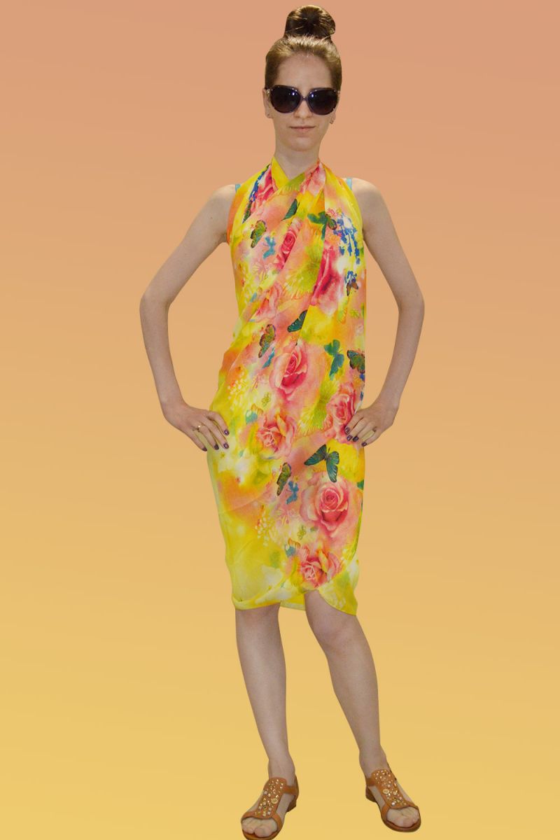 Желтое парео Dreamful с цветочным принтом. Размер - 100 х 180 см.