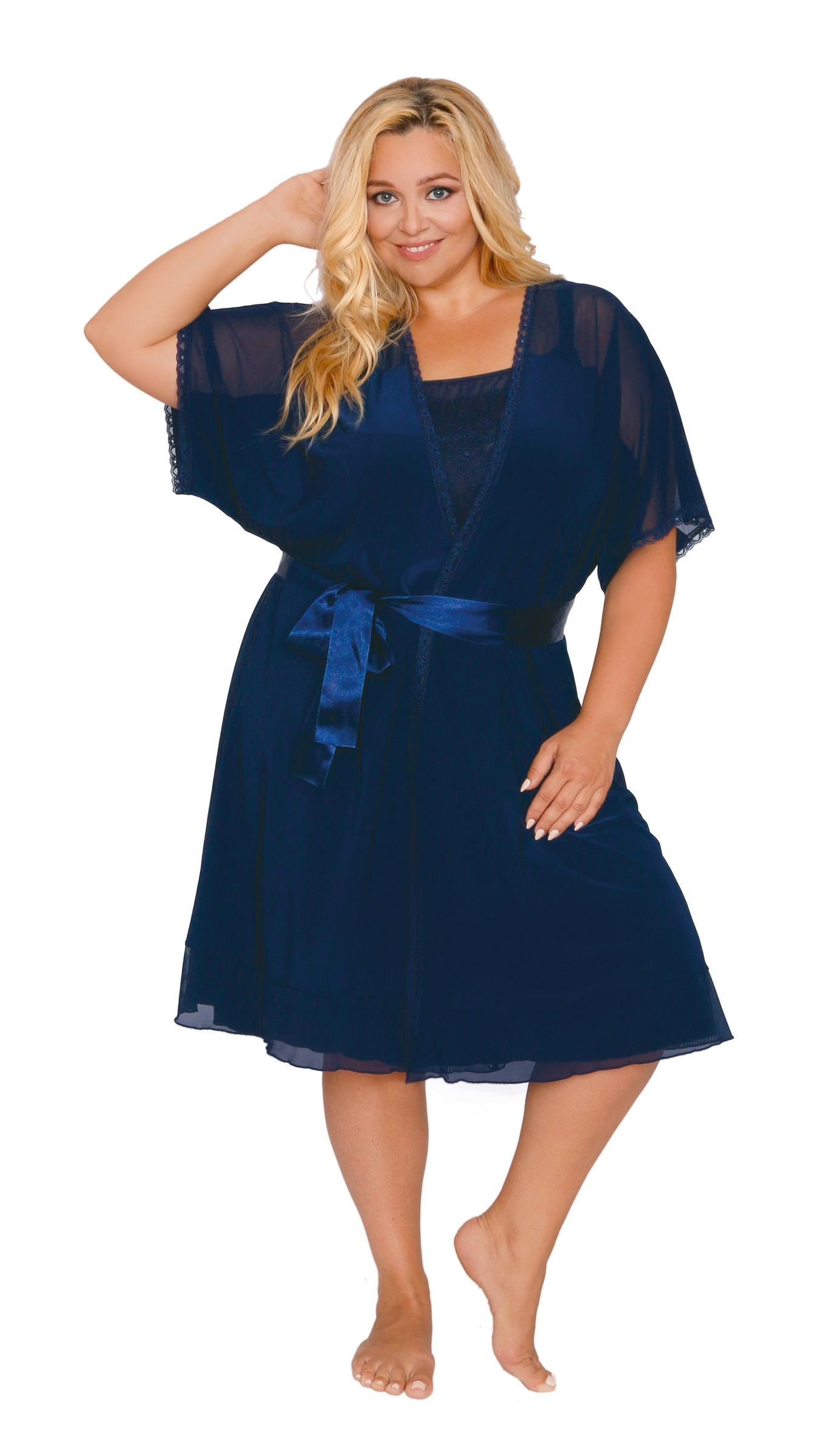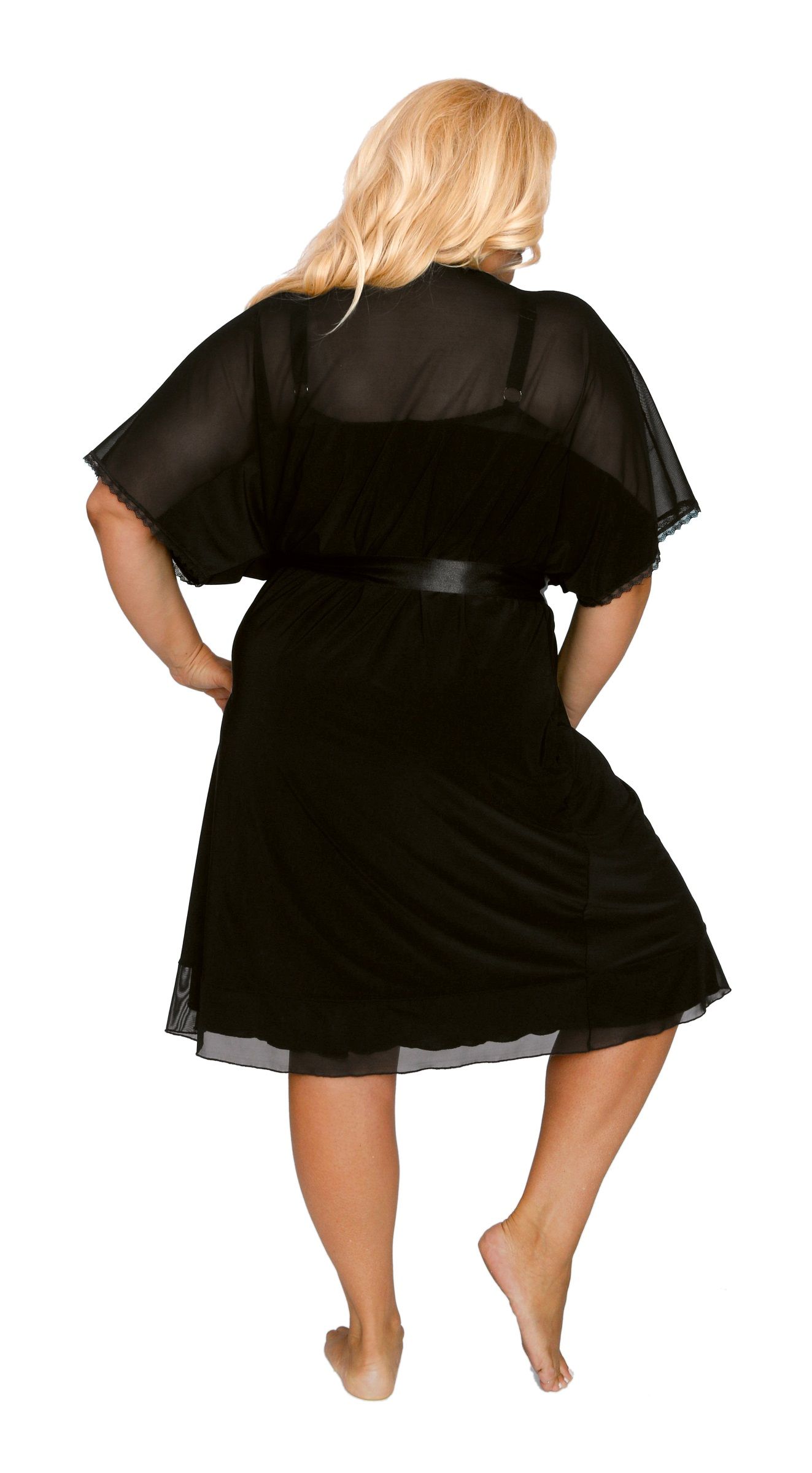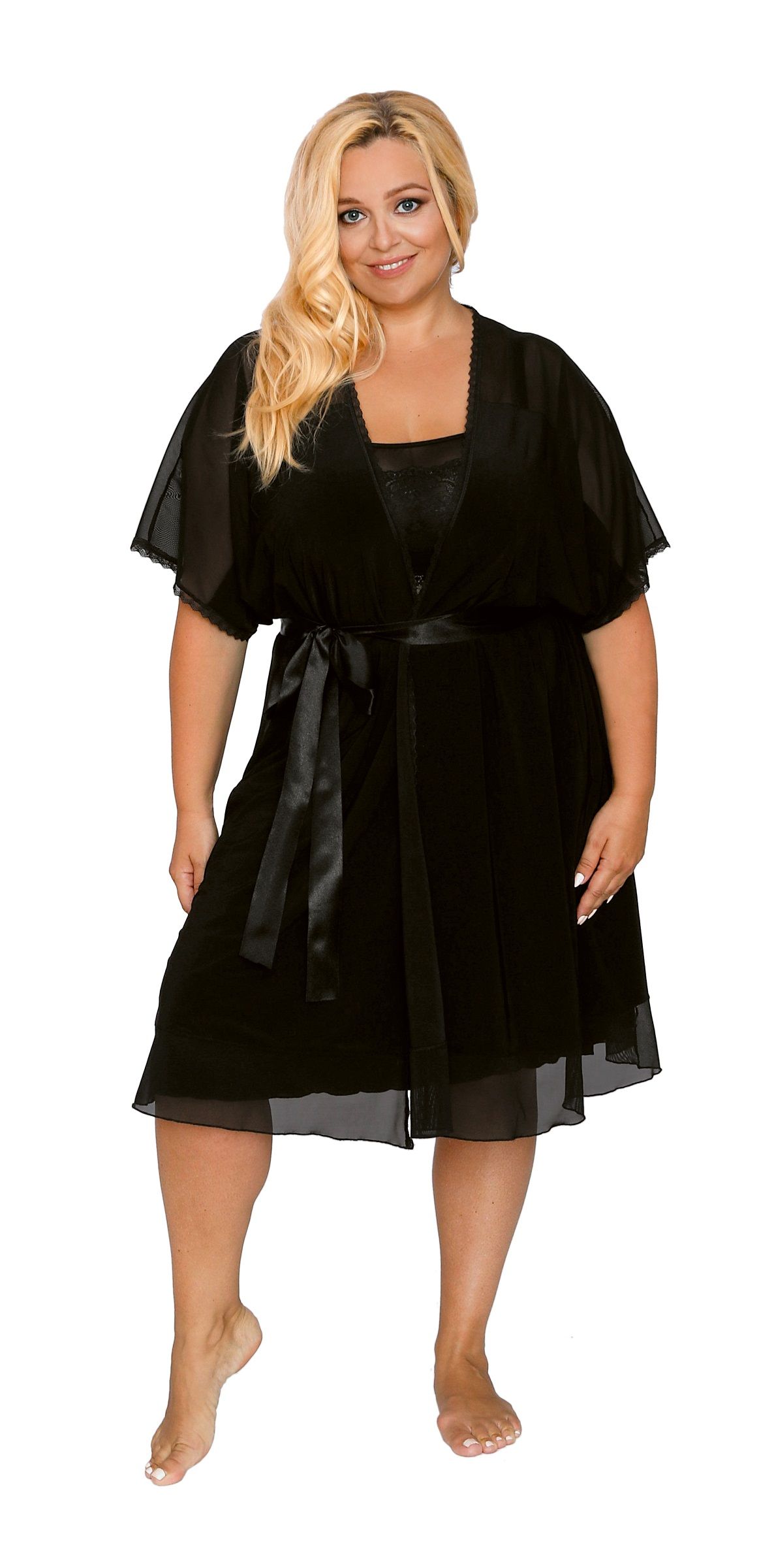 Пеньюар, с короткими рукавами, верх из вуали. Атласный пояс в комплекте.