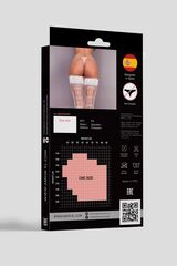 Чулки с в мелкую сетку, сверху украшены кружевной резинкой на силиконе. Сзади чулки имеют оригинальный рисунок. Благодаря использованию большего количества нейлона, белье сохраняет очертания, не деформируется, растягивается и выгодно облегает фигуру. Изделие не вызывает аллергию, не окрашивает. Уход и стирку следует производить в соответствии с инструкцией завода-изготовителя на этикетке. Плотность - 20 ден. Трусики не входят в комплект!