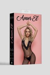 Боди-комбинезон с открытым доступом и V-образным ажурным воротником с захлестом на шею. Дизайн выполнен в виде мелкой сетки. Благодаря использованию большего количества нейлона, белье сохраняет очертания, не деформируется, растягивается и выгодно облегает фигуру. Изделие не вызывает аллергию, не окрашивает. Уход и стирку следует производить в соответствии с инструкцией завода-изготовителя на этикетке.