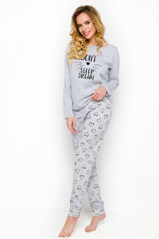 Женская пижама Gala. Комплект состоит из кофты с длинными рукавами и прямых штанов на мягкой резинке с принтом сердечки . Отличный вариант для сна и домашнего отдыха. В комплекте: кофта, штаны.