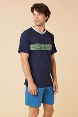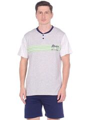 Мужская трикотажная пижама из хлопка. Майка с коротким рукавом с контрастной отделкой выреза горловины и геометрическим принтом и контрастные шорты. В комплекте: футболка, шорты.