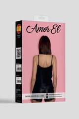 Комплект нижнего белья для сна, состоящий из атласной майки на бретельках с ажурным V-образным вырезом на груди и атласных шортов с кружевными вставками. В комплекте: топ, шорты.