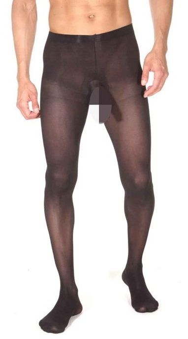 Плотные полупрозрачные мужские колготы с интимным доступом