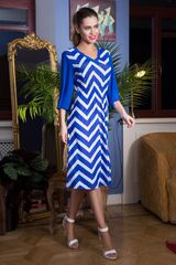 Пляжное платье выполнено из принтованной эластичной сетки. Модель приталенного силуэта, за счет резинки на талии, и рукавом 3/4. Горловина V-образного силуэта обработана обтачкой из однотонной сетки.