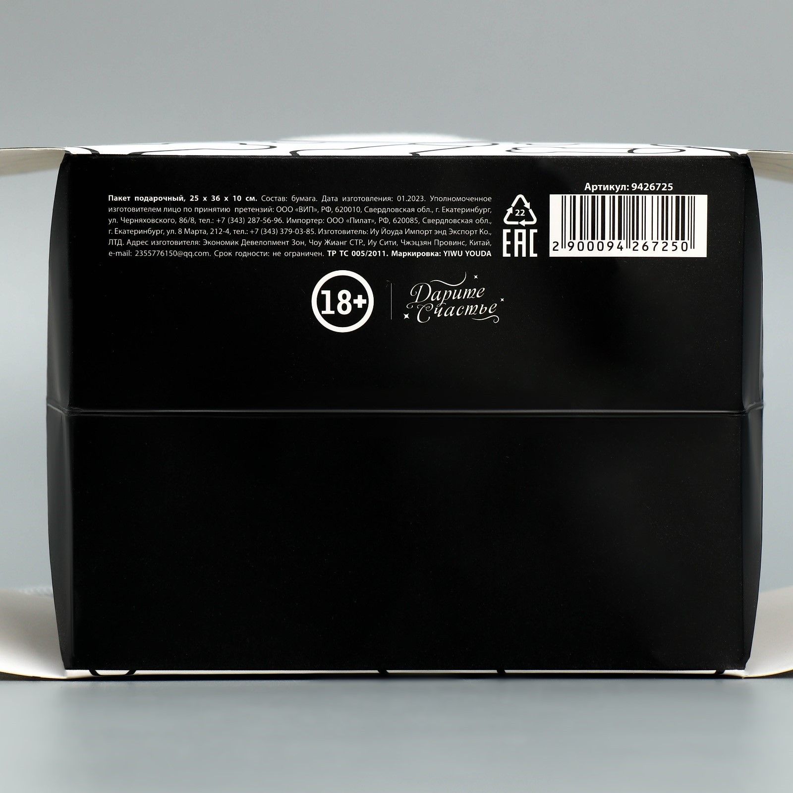 Подарочный пакет «Паттерн». Размеры - 25х36х10 см.