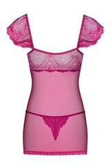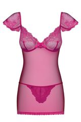 Соблазнительная полупрозрачная сорочка, украшена кружевом с цветочным рисунком, чашка мягкая на косточке, в комплект входят трусики. В комплекте: сорочка, трусики-стринги.