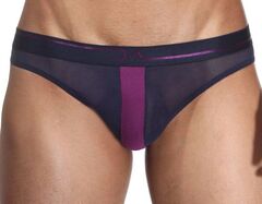 Сексуальные мужские трусы-слипы из прозрачной тёмно-синей сеточки, спереди украшены контрастной сиреневой полоской. Мягкий и эластичный, очень лёгкий материал. На поясе стильная пришивная резинка со стилизованными латинскими буквами «DA», как символ бренда «Doreanse». Передняя панель без подкладки.