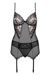 Полупрозрачный корсаж Musca с бордовым кружевом. Подчеркивает все изгибы стана. Трусики из такого же материала в комплекте. В комплекте: корсаж, трусики-стринги.