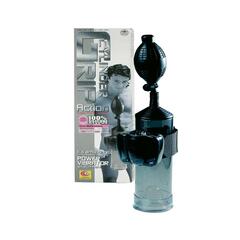 Вакуумная помпа с вибрацией, выполненная из полупрозрачного материала с уплотненной манжетой прозрачного цвета, которая плотно обхватывает половой член, создавая полную герметичность. Диаметр колбы – 6,5 см, диаметр отверстия насадки в нерастянутом состоянии -2,5 см. Воздух откачивается при помощи вакуумной груши. Давление в колбе сбрасывается при помощи кнопки, расположенной на верхней части груши. Механизм вибрации крепится к помпе с помощью ремня с вибромеханизмом.
