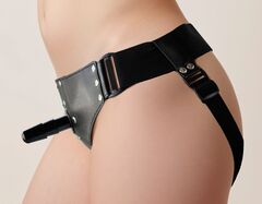 Одна из классических версий поясов - харнесс. Трусики сделаны из нескольких слоев полиуретановой стрейч-кожи (снаружи) и бархат внутри. Подобранные для этой модели материалы зарекомендовали себя, как наиболее удобные и практичные для этих целей. Фиксация пояса сделана из широкой эластичной ленты и бандажа для плотного охвата спины. Дополнительно имеется фиксация двумя кожаными ремешками, проходящими между ног.