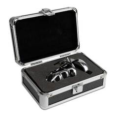 Упакован в стильный серебряный кейс.