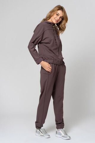 Прекрасный костюм выполнен из мягкой, смесовой ткани. Комплект состоит из укороченной курточки на молнии и брючек. Курточка с длинными рукавами и глубоким капюшоном, дополненный регулируемыми завязками. Удобные прямые брючки на плоской резинке по талии, боковыми комфортными карманами и на манжете-резинке. Оригинальный фасон, мягкость ткани и красивый цвет придаст элегантности образу, подчеркнет Вашу красоту, женственность, стиль и сделают эту модель отличной вещью домашнего гардероба. В комплекте: куртка, брюки.
