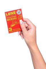 Три латексных презерватива с накопителем и смазкой в яркой фирменной упаковке. Гладкая поверхность и силиконовая смазка для качественного и длительного скольжения. Аромат клубники добавит романтики в ваши отношения! Наслаждаться процессом, не беспокоясь о безопасности, легко с презервативами LUXE «Красноголовый мексиканец». Необычная упаковка с креативным дизайном и многообещающим названием также призвана сделать вашу близость незабываемой. Ширина - 52+/-2 мм.