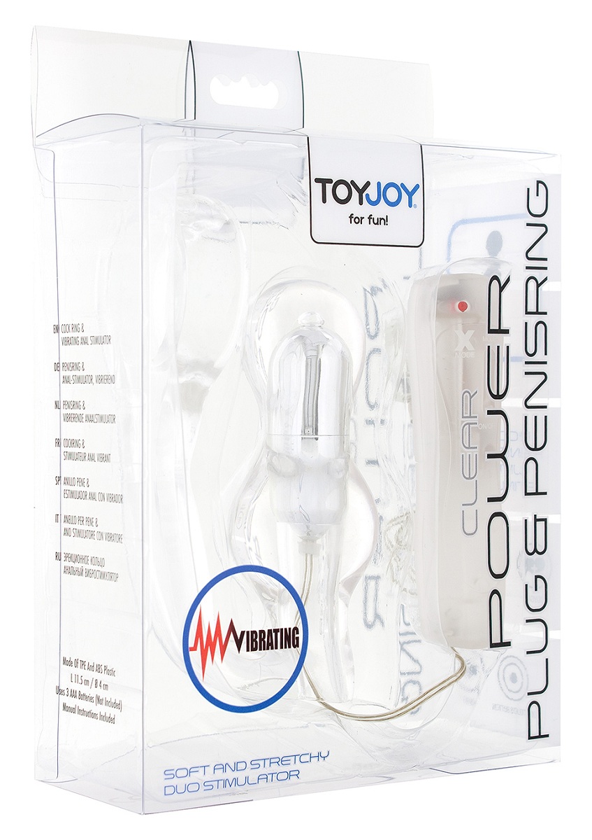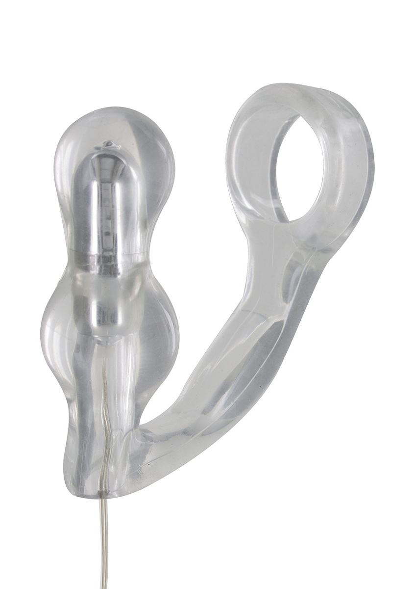 Прозрачная анальная пробка с вибрацией и эрекционным колечком MANPOWER