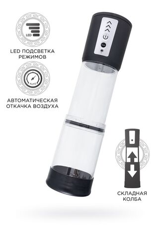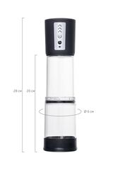 Помпа имеет 3 уровня давления, которые регулируются кнопкой включения на колбе с LED-подсветкой режимов. Другая кнопка постепенно сбрасывает вакуум. Помпа не имеет ограничений при откачке воздуха и требует самостоятельного прекращения понижения давления с помощью кнопки Valves. Благодаря отрицательному давлению увеличивается приток крови к половому члену.