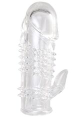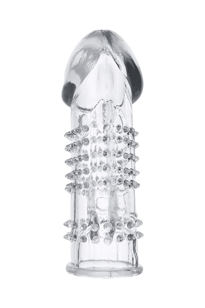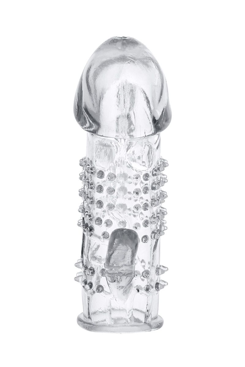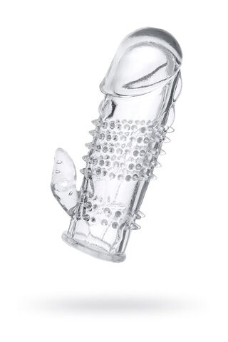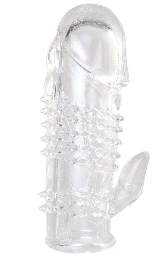 Прозрачная гелевая насадка с шипами и клиторальным отростком - 13 см.